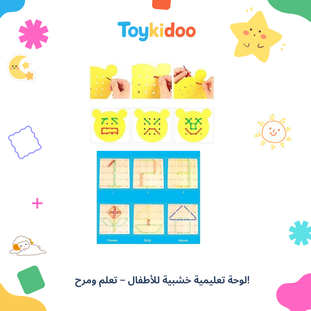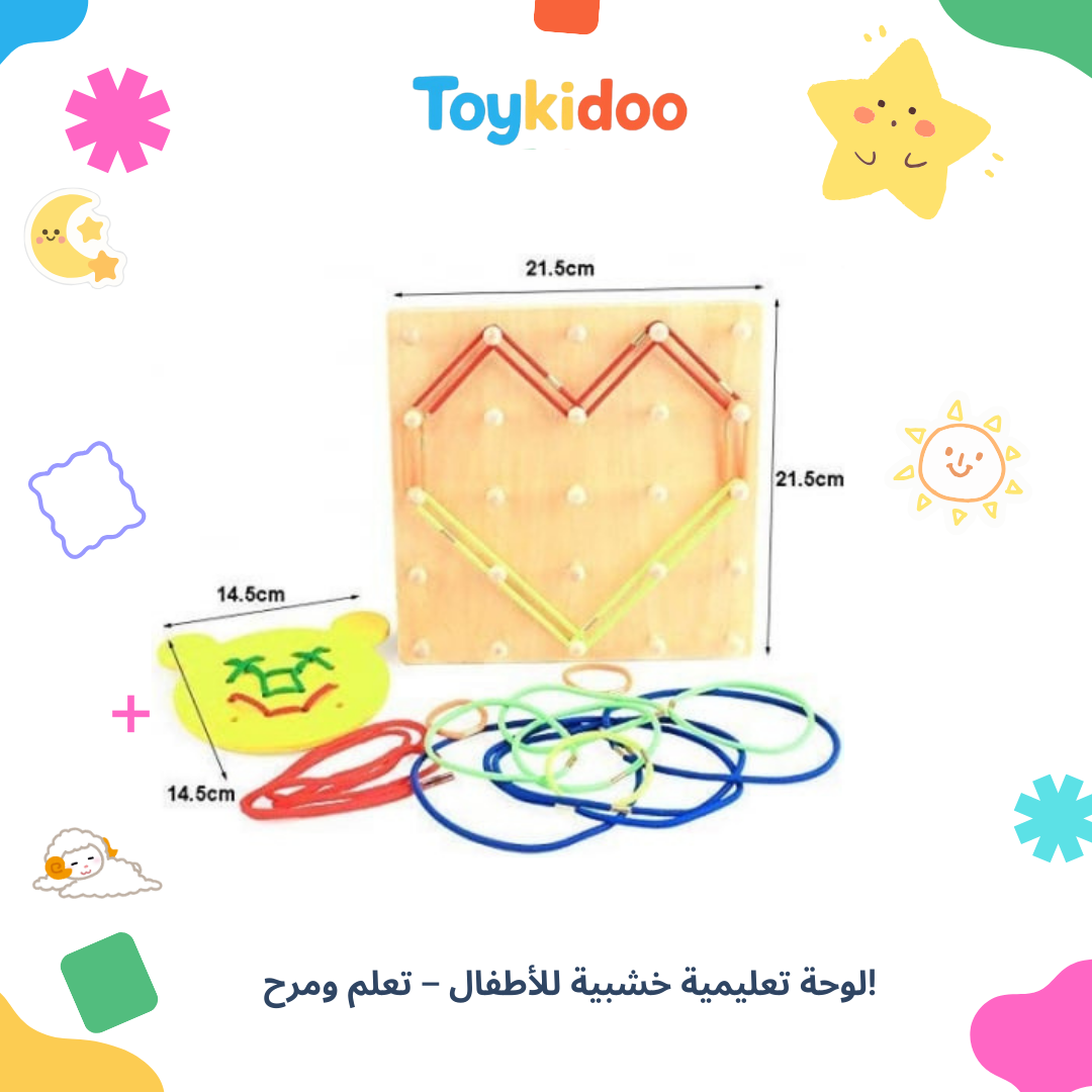 La planche éducative en bois Toykidoo à élastiques est un jouet pédagogique conçu pour stimuler la créativité, la logique et la motricité fine des enfants dès l’âge de 3 ans.