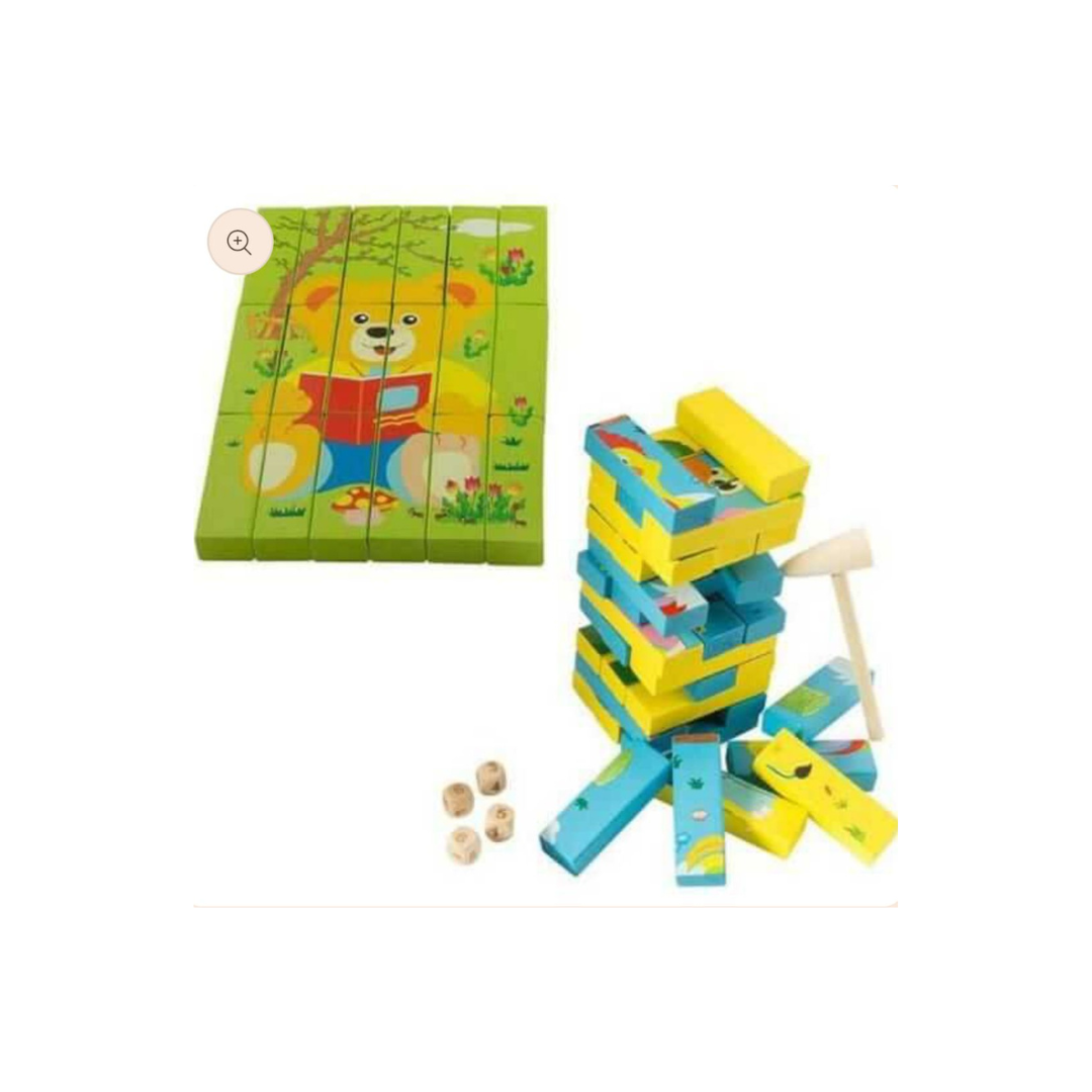 Découvrez une façon géante de jouer ! Ce jeu combine l’excitation du Jenga classique avec la réflexion d’un puzzle, le tout en format XXL pour jouer directement au sol. C’est l’activité idéale pour faire bouger et réfléchir les tout-petits en même temps.
