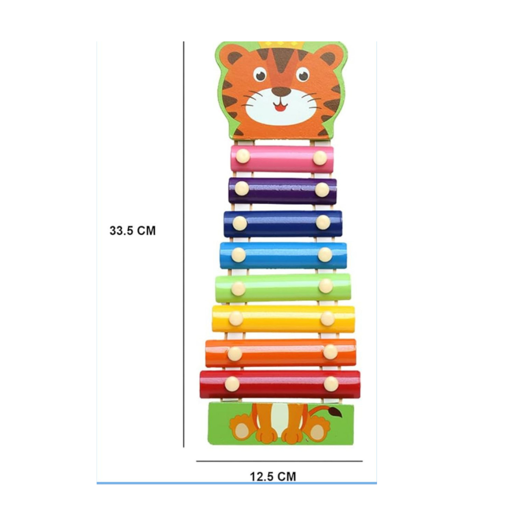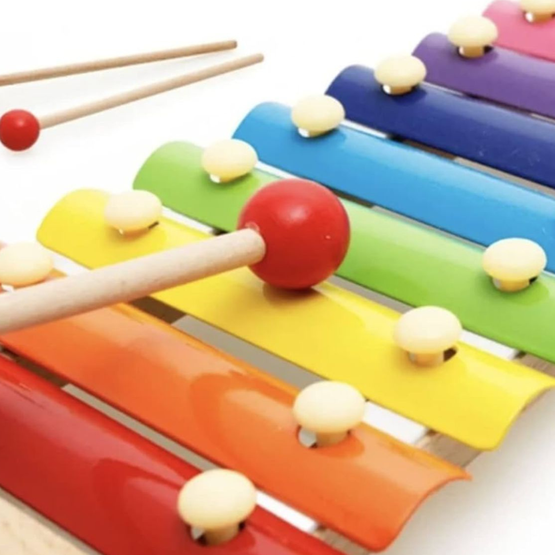 Grâce à ses huit lames métalliques accordées, l’enfant peut composer ses premières mélodies en frappant délicatement avec les baguettes fournies. C’est un jouet à la fois joyeux et éducatif qui transforme l’apprentissage de la musique en un véritable moment de plaisir.